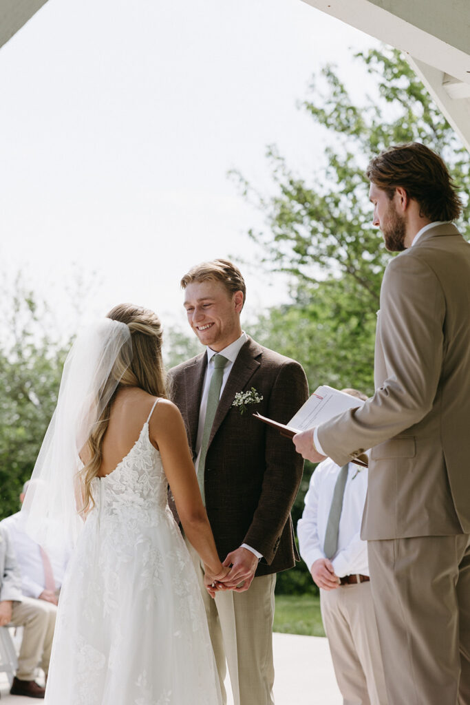 We love the lush but understated bouncy florals, tan and green palette for the groomsmen, and the hazy, editorial photo style in these gorgeous captures of the day.