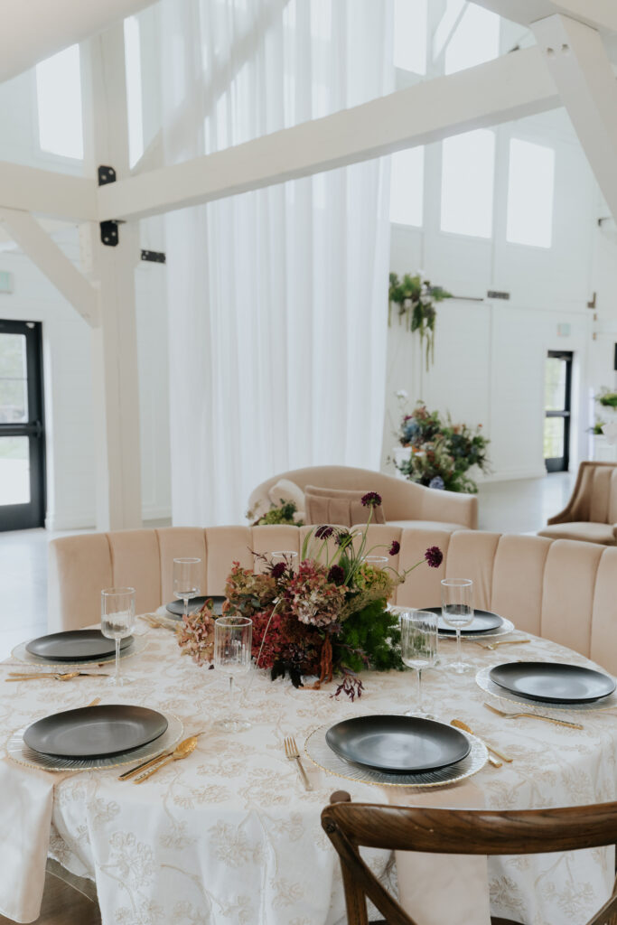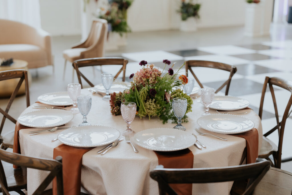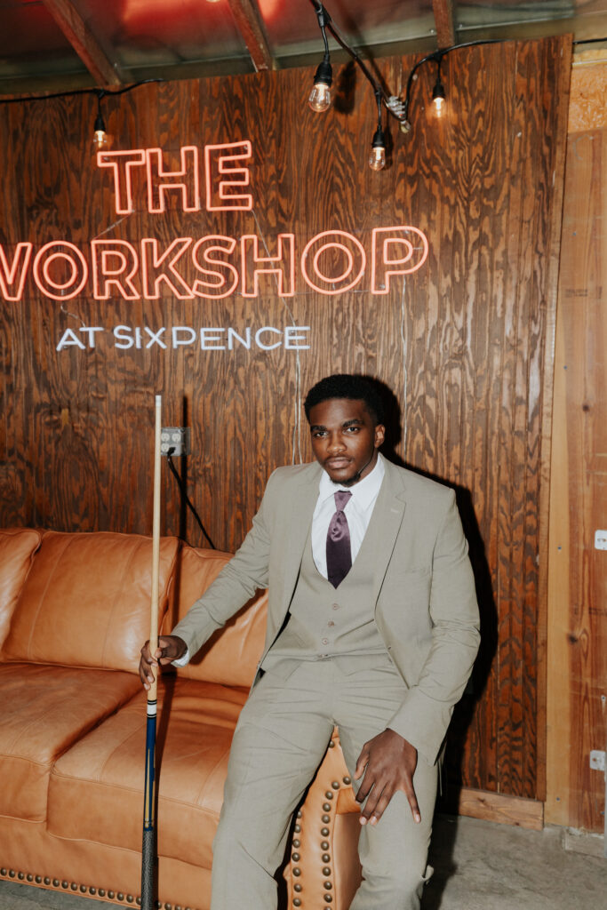 Design & Décor Dreams: A Classic Party Rental showcased their new lounge furnishings and elegant tablescape settings, complete with lush florals by Solstice Floral. Every corner of The Sixpence felt photo-ready and full of charm.