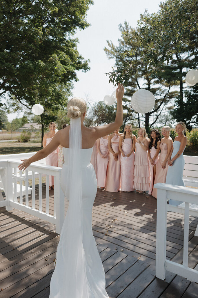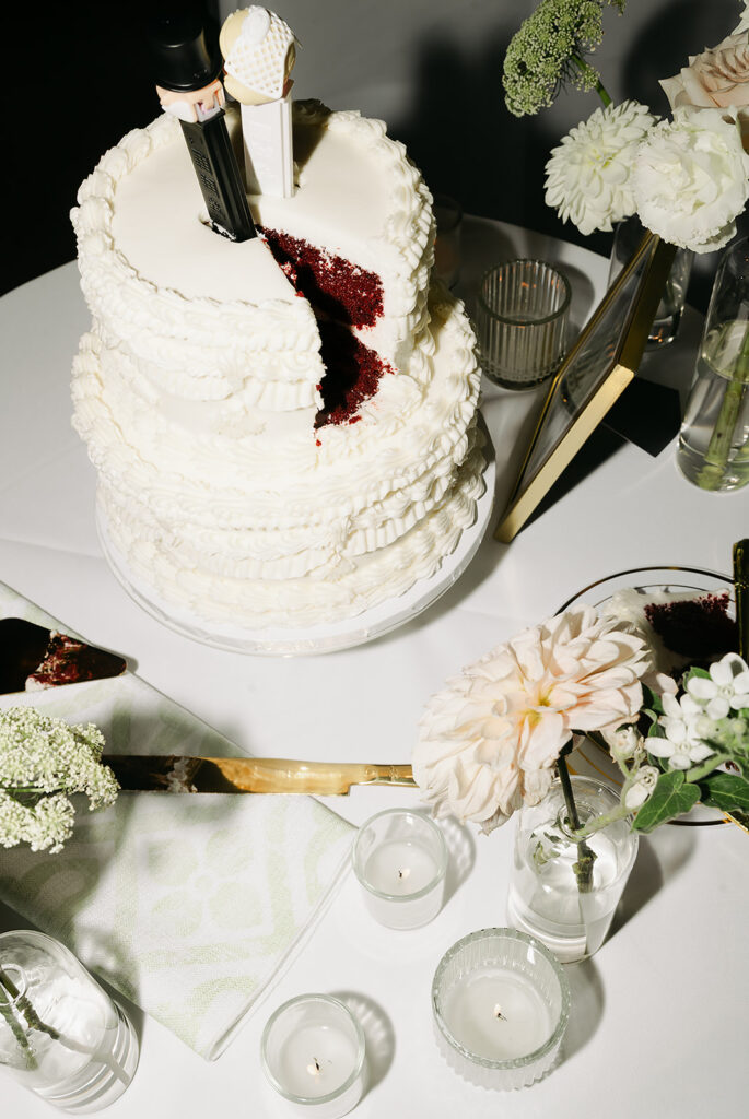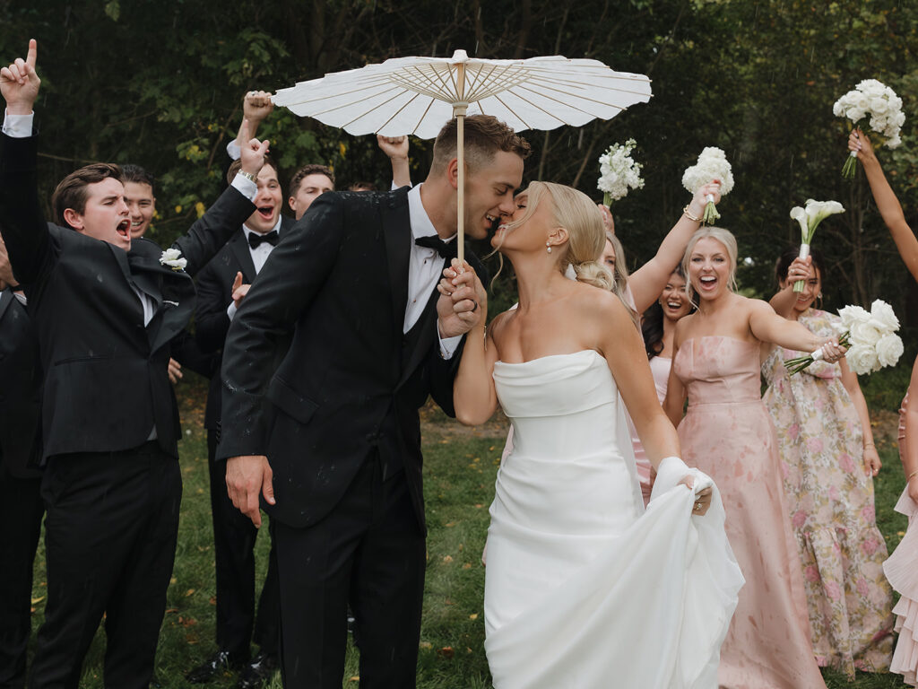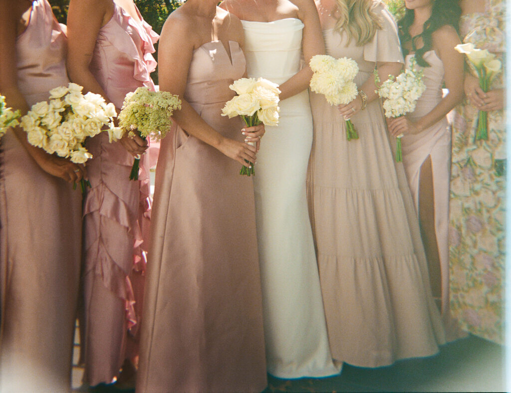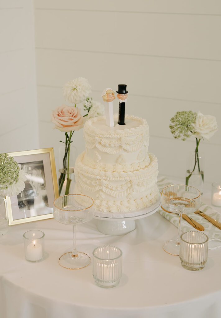 The details of this wedding were among our favorites: a refined palette of ivory, soft pinks, and muted greens that felt effortlessly timeless and wove through every details of the day. A traditional tiered cake stood as a centerpiece of elegance, while the bride’s classic gown, adorned with vintage lace detailing, brought a sense of heritage and sophistication to the day.