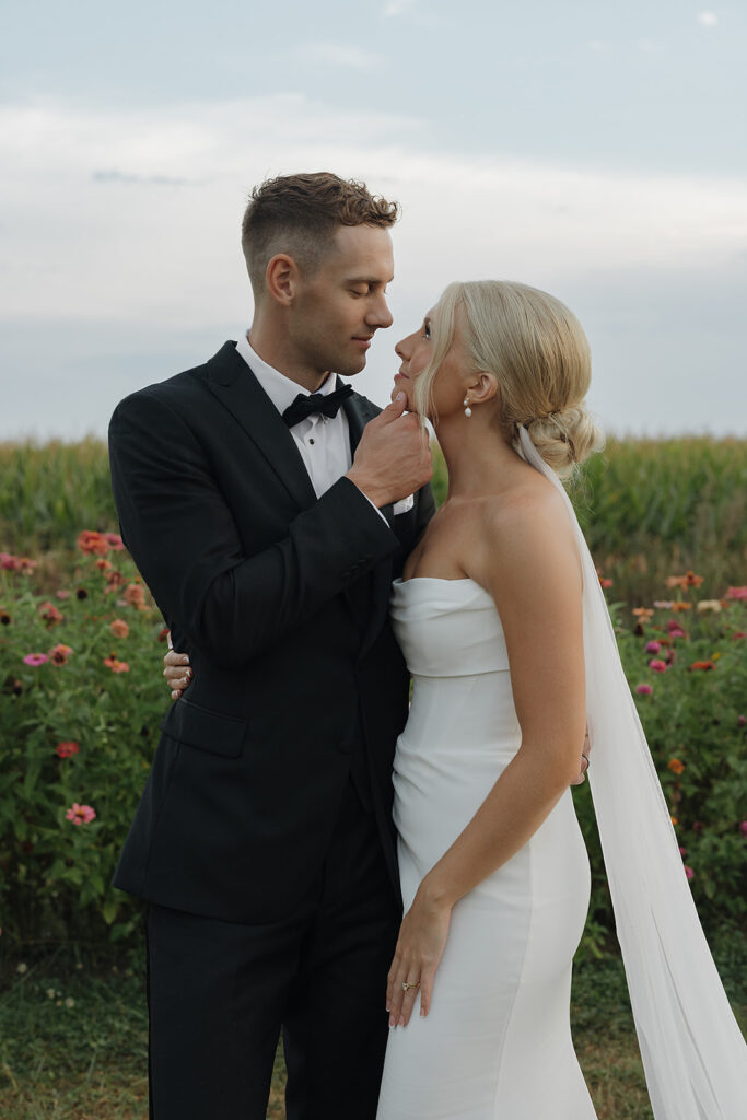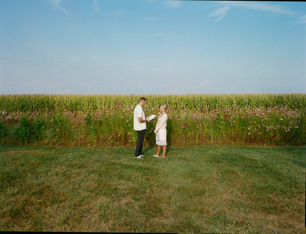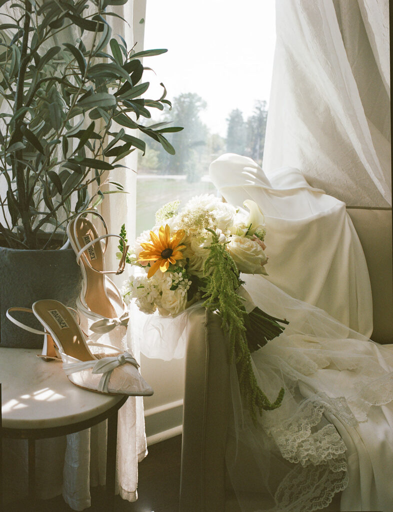 Mikayla & Caden’s wedding blended timeless sophistication with effortless modernity. Photographed in both crisp digital and grainy film, their day unfolded with layered texture: lace details, clean lines, and an understated palette of soft florals and sentimental blues.