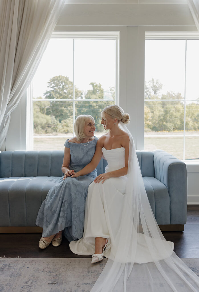 The morning began with the girls getting ready in The Homestead followed by The Loft Suite; both spaces filled with beautiful natural light and quiet anticipation. Mikayla & Caden’s moms both wore something blue, creating a subtle visual link between generations, and pulling in the classic tradition of a bride having something blue with her on wedding day.