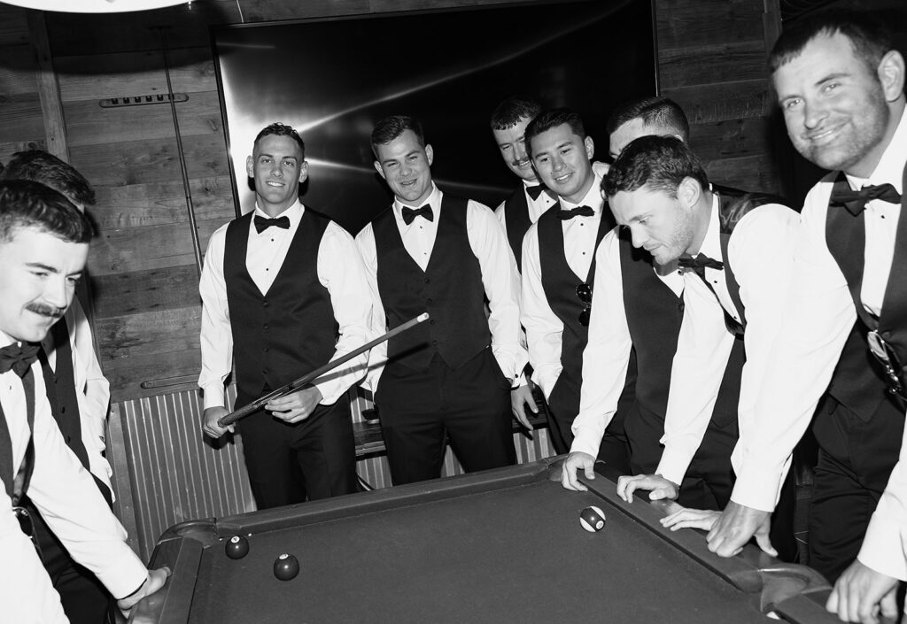 Caden and his groomsmen got ready in The Workshop (in between playing billiards), their tailored look echoing the clean aesthetic of the day.